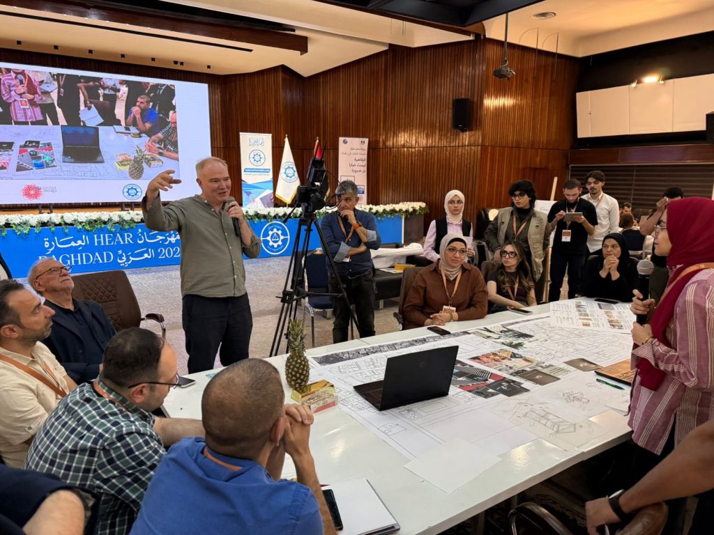 بحضور نقيب المهندسين العراقيين، المهندس ذوالفقار حوشي المكصوصي، تواصلت لليوم الثاني على التوالي في مقر النقابة ببغداد فعاليات ورشة العمل المقامة ضمن مهرجان العمارة العربي (HEAR 2025)، بمشاركة واسعة من طلبة الأقسام المعمارية من مختلف الجامعات العراقية، وبإشراف نخبة من الأساتذة والمتخصصين في مجال العمارة من داخل العراق وخارجه.