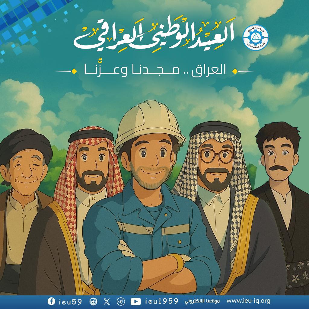 تتقدم نقابة المهندسين العراقية بأسمى آيات التهاني والتبريكات إلى الشعب العراقي الكريم بمناسبة العيد الوطني الذي يوافق الثالث من تشرين الأول.
