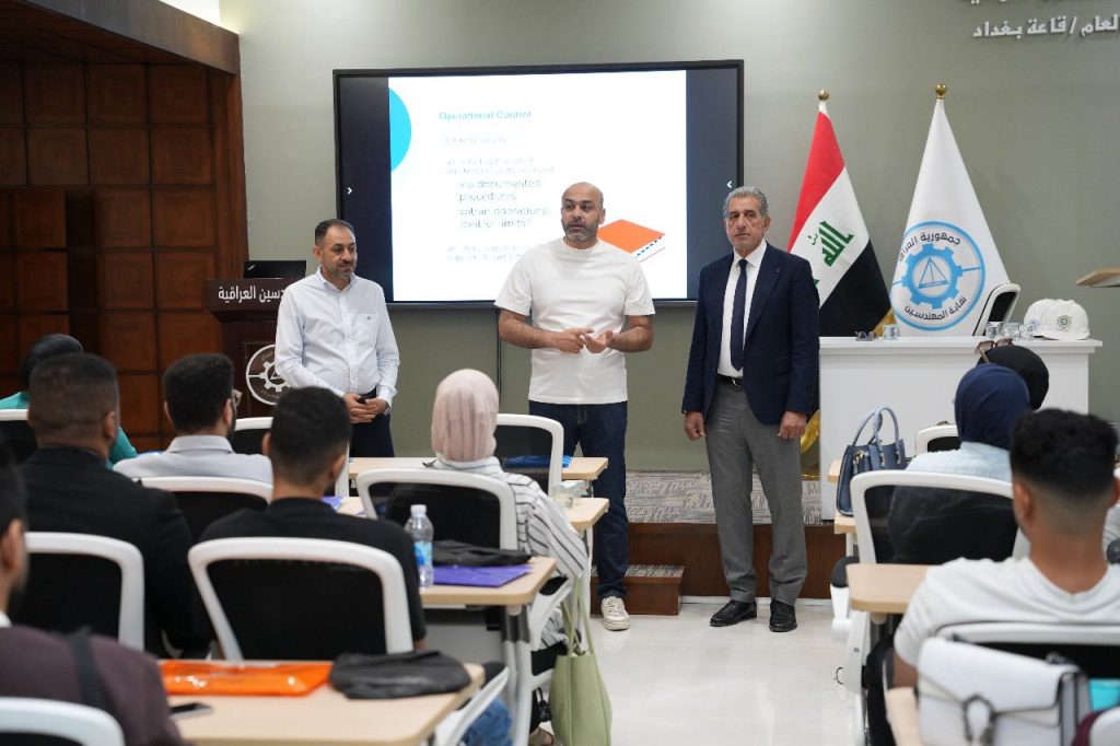 وحضر المحاضرة السيد نقيب المهندسين، المهندس ذوالفقار حوشي المكصوصي، الذي أكد في كلمة له أهمية التوعية بالمعايير العالمية في مجال الإدارة البيئية، مشيرًا إلى أن النقابة تسعى إلى دعم مثل هذه المبادرات التدريبية التي تسهم في رفع كفاءة المهندس العراقي ومواكبته لأحدث الأنظمة المعتمدة عالميًا.
