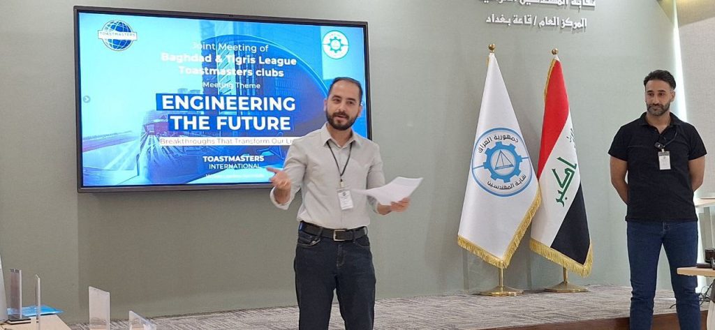 Under the patronage of the President of the Iraqi Engineers Union (IEU), Engineer Dhulfiqar Hoshi, the IEU hosted a joint meeting of local Iraqi Toastmasters clubs themed “Engineering the Future.”