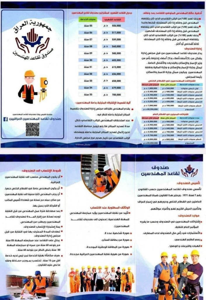 تنفيذاً لمقررات المؤتمر العام لنقابة المهندسين العراقية للعام 2025، أقرّ مجلس إدارة صندوق تقاعد المهندسين، زيادة الرواتب التقاعدية للمهندسين المتقاعدين المشتركين في الصندوق بمقدار (125,000) دينار، ليصبح أعلى راتب تقاعدي (700,000) دينار للمهندسين الذين أكملوا خدمة (35) عاماً في القطاع الخاص.