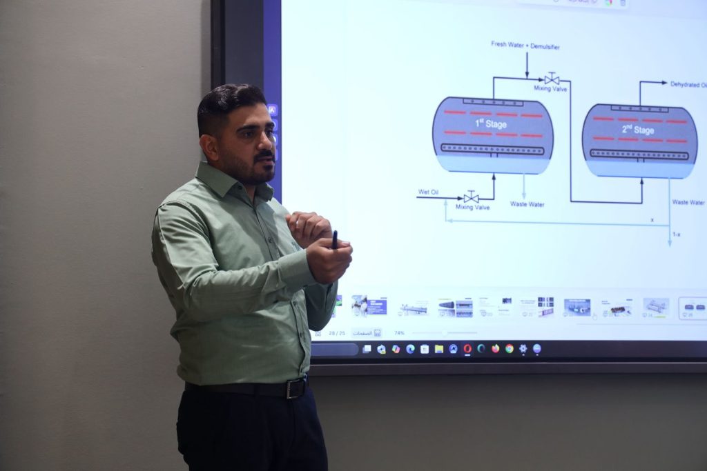 وحضر المحاضرات السيد نقيب المهندسين العراقيين المهندس ذوالفقار حوشي المكصوصي، الذي أكد في كلمة له أهمية التعرف على عمل المنشآت السطحية وعمليات المعالجة الأولية للنفط الخام، إضافة إلى تصنيف الغاز ودراسة الجدوى الاقتصادية والقيمة التسويقية له.