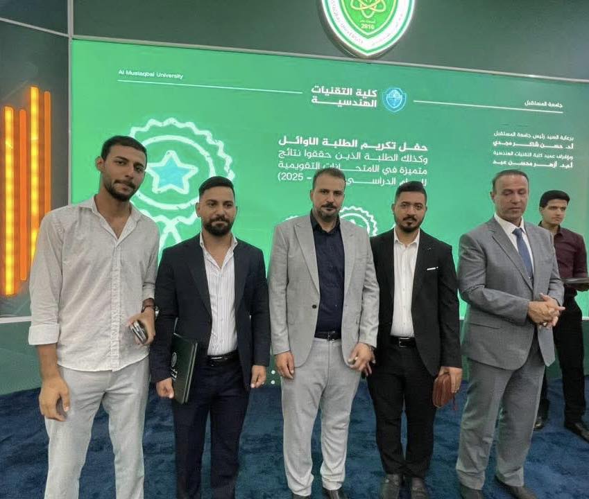 شارك رئيس فرع نقابة المهندسين العراقية في بابل، المهندس الاستشاري زمن علي موسى، برفقة رئيس شعبة الهندسة الكيمياوية المهندس أحمد فاضل، في الحفل الذي أقامته جامعة المستقبل لتكريم الطلبة الأوائل والمتفوقين من الأقسام الهندسية، وذلك تقديراً لجهودهم وتفوقهم الدراسي، وترسيخاً لنهج النقابة في دعم الطاقات الشابة وتمكينها في المجال المهني والهندسي.