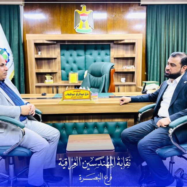 2025-10-19 فرع البصرة يبحث مع شركة الصناعات البتروكيماوية تعزيز التعاون لخدمة المهندسين زار رئيس فرع نقابة المهندسين العراقية في البصرة، المهندس كرار حافظ العبادي، شركة الصناعات البتروك